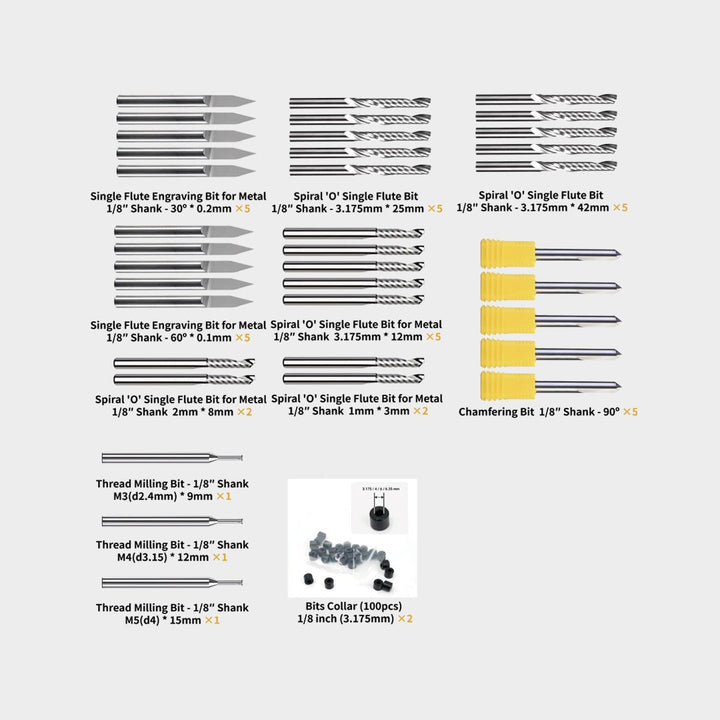Akár fa gravírozás, műanyag alkatrészek, alumínium lemezek vagy kompozit anyagok megmunkálásáról van szó – ez a csomag biztosítja a szükséges stabilitást, élességet és tartósságot az állandóan kiváló minőségű eredményekhez.
