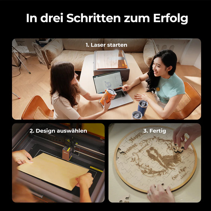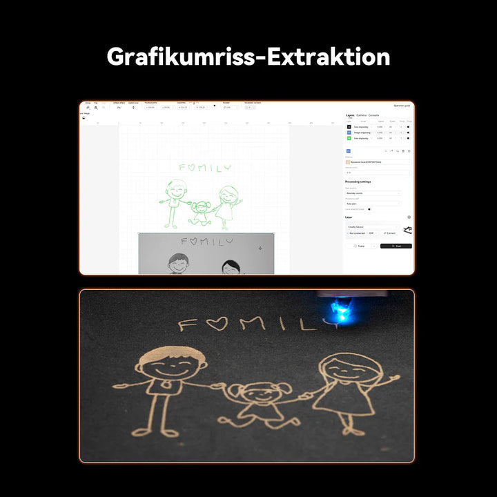 Egyszerűen helyezze be az anyagot, indítsa el, és a lézer elvégzi a többit.