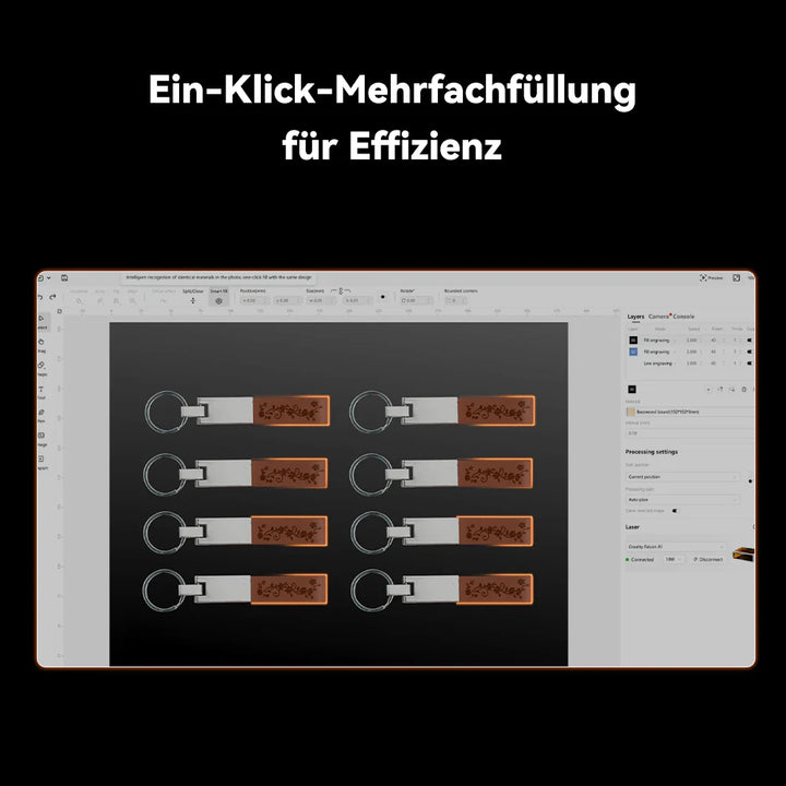 Az automatikus anyagfelismerés, intelligens kameratámogatás és a nagy teljesítményű dupla lézertechnológia révén rekordidő alatt készít kiváló minőségű gravírozásokat és vágásokat.