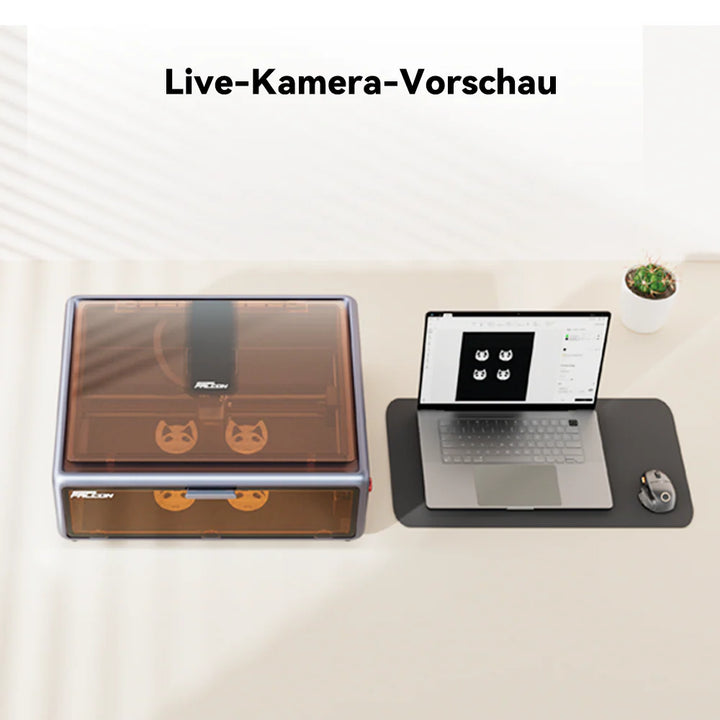A beépített HD-kamera valós időben mutatja az egész munkaterületet, ami pontos pozicionálást és egyszerű előnézetet tesz lehetővé a gravírozáshoz.