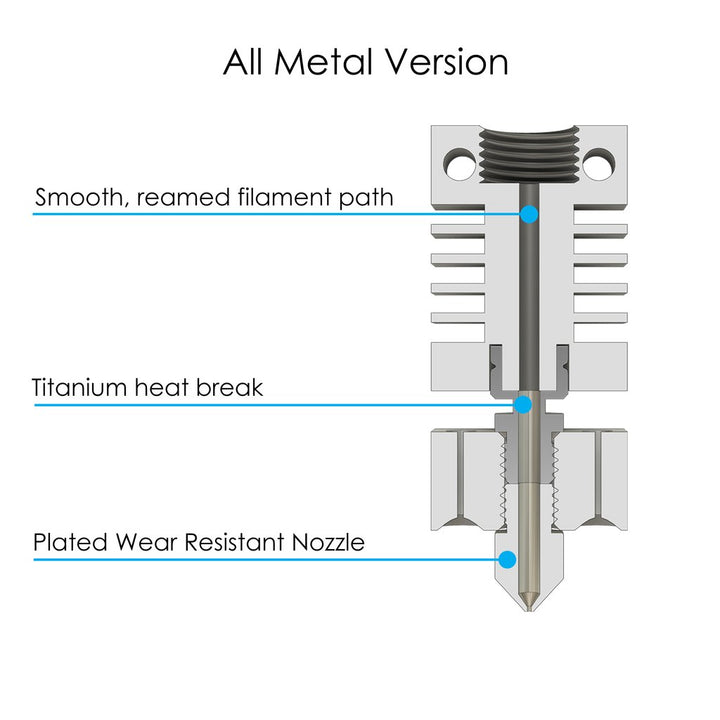 • All-Metal-Design: Kein PTFE im Schmelzbereich – geeignet für Hochtemperatur-Filamente.