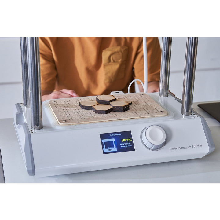 Der FORMART S liefert durch seine starke Vakuumpumpe und die intelligente Temperatursteuerung detailreiche Ergebnisse – von Prototypen bis hin zu kreativen Bastelprojekten. Die Vorheiz- und Entfeuchtungsfunktion optimiert die Materialqualität und verhindert Luftblasen. Dank General- und Expertenmodus ist das Gerät sowohl für Anfänger als auch erfahrene Nutzer perfekt geeignet.