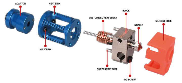 • Innendurchmesser der Düse und des Heat Breaks von 0,4 mm für einen reibungslosen Filamentfluss und höhere Druckauflösungen.