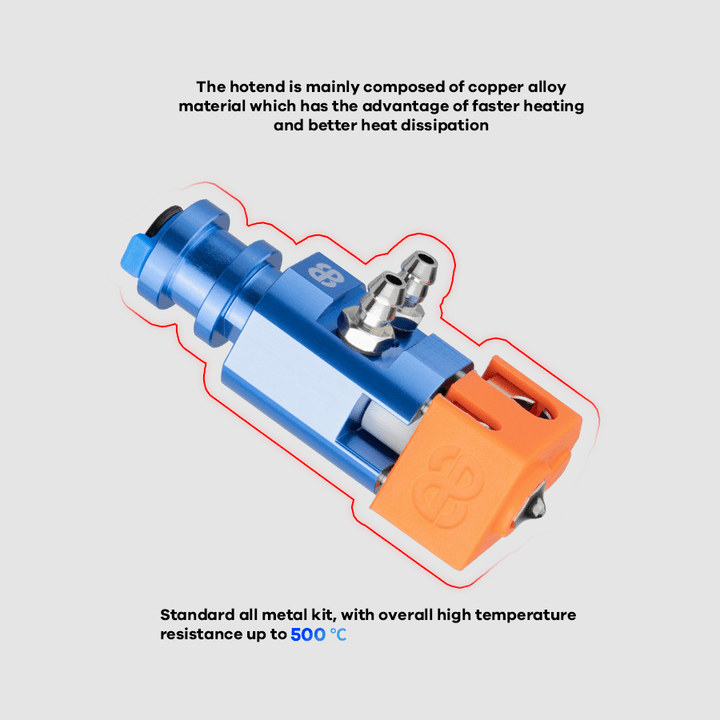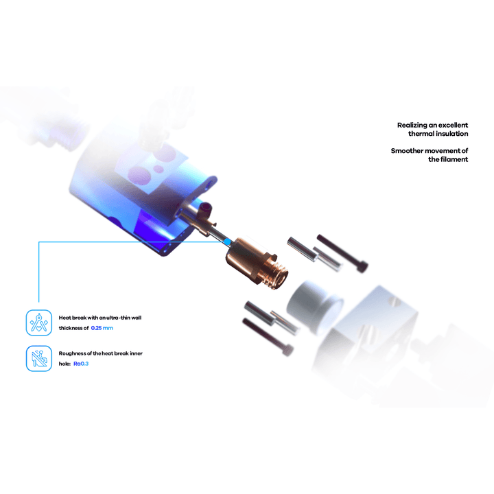 • Adoptiert eine Kühlwasserzirkulationsstruktur zur Wärmeableitung, die den Kühlkörper konstant auf Raumtemperatur hält und hervorragende Wärmeableitung bietet, um ein Verstopfen der Filamente zu verhindern