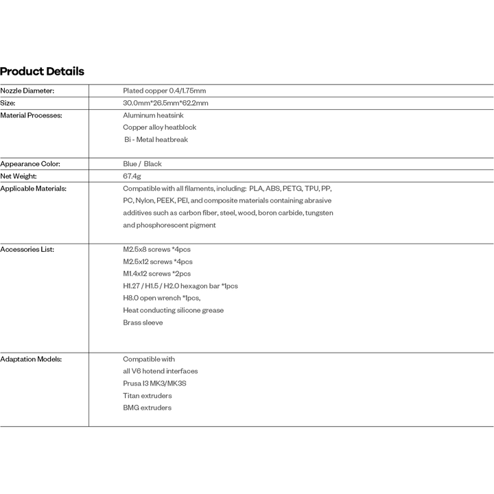 • Alle V6 Hotend-Schnittstellen