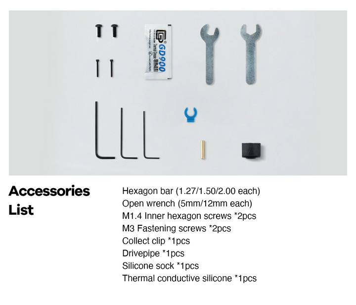 Im Lieferumfang des Phaetus Dragonfly Hot-End BMS sind folgende Zubehörteile enthalten: