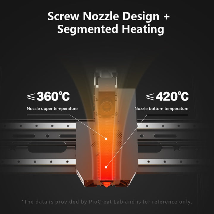 Az újonnan fejlesztett nagy hőmérsékletű extruder többszegmenses fűtési zónákkal rendelkezik, és képes fogadni 0,4 mm-től 3 mm átmérőjű fúvókákat.