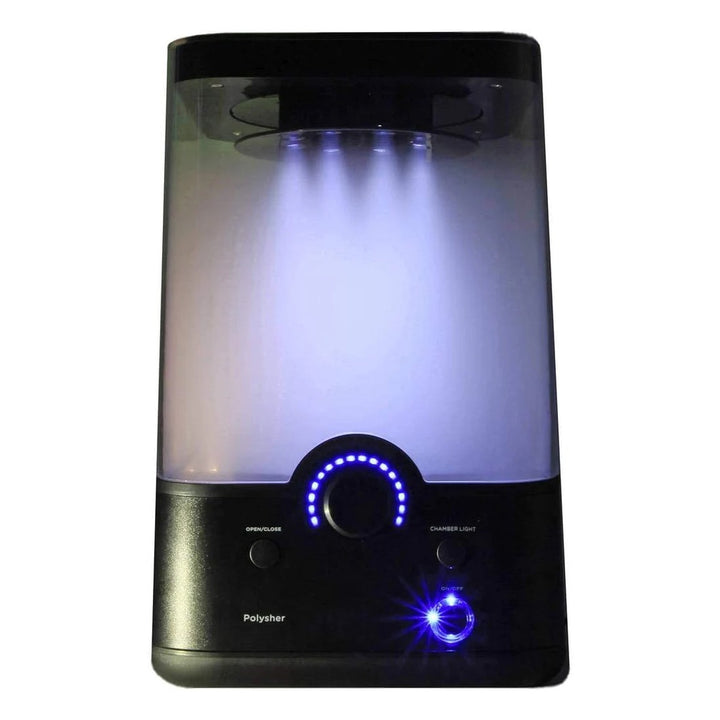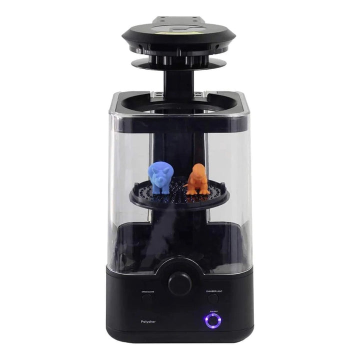 A Polymaker Polysher egy kifejezetten kifejlesztett asztali utófeldolgozó eszköz, amely egyetlen gombnyomásra simítja a PolySmooth és PolyCast filamentekből készült 3D nyomtatott modelleket.