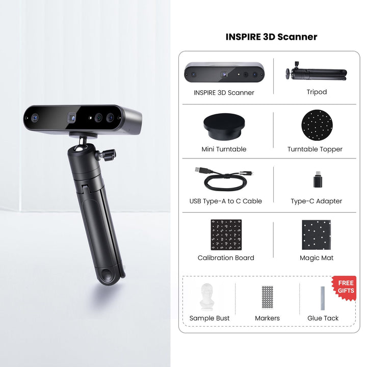 Der Zugang zu leistungsstarken 3D-Scannern war lange Zeit durch hohe Preise eingeschränkt. Mit dem Revopoint INSPIRE, unserem kosteneffektivsten 3D-Scanner, ändert sich das. Dieser kompakte Handheld-Scanner, der für das Scannen mittelgroßer Objekte konzipiert ist, bringt hochwertige 3D-Scans für jedermann in Reichweite. Egal, ob Sie Ingenieur, Designer, Künstler oder 3D-Druck-Enthusiast sind, der INSPIRE ermöglicht es Ihnen, ohne Barrieren zu kreieren und Ihre Projekte in atemberaubenden 3D-Details zum Leben zu erwecken.